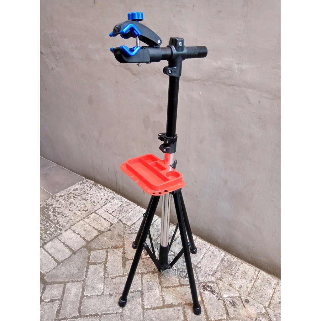 Bike stand repair. It is a two legged stand that is made from an aluminum alloy. It is also resistant to corrosion. Product title topeakmart pro mechanic bicycle repair workshop stand maintenance rack with tool tray extensible bike repair stand average rating. This strong and adaptable stand features a 3 point leg system with reinforced center a quick release adjustable height and a cam actuated clamp that fits bike tubes of 7 8 3 and is ideal for deep aero shaped frames.
