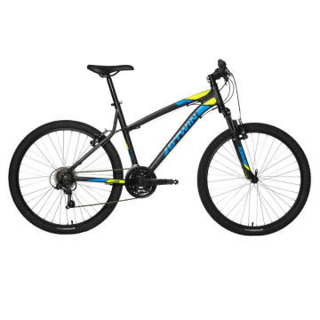 Btwin mountain bike. Designed for cross country and all mountain compatible mountain bikes with 3 switch ride wheel sizes. Free shipping above rs 999 and minimum 2 years warranty. 21 frame 26 wheels. Very smooth to ride with easy shifting of gears.