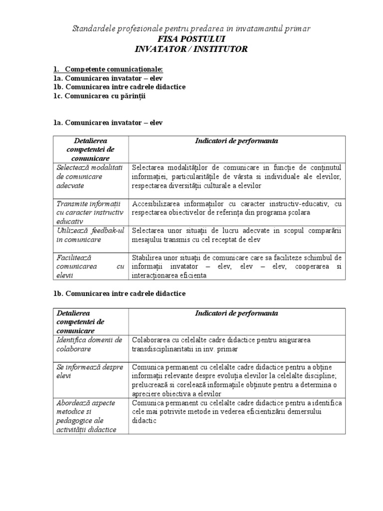 Folositi optiunea cauta in site din stanga sus a paginii si cautati cor sau descarca cor clasificatia ocupatiilor din romania pentru ca ai nevoie la completarea fisei postului. Criterii de evaluare a performantelor in toate fisele de post modelele rubinian au trecut cu succes prin sute de verificari itm. Invatator scoala primara scoala nr. Va prezentam un model de fisa postului pentru invatator din invatamantul primar fisa de post pentru invatatori.