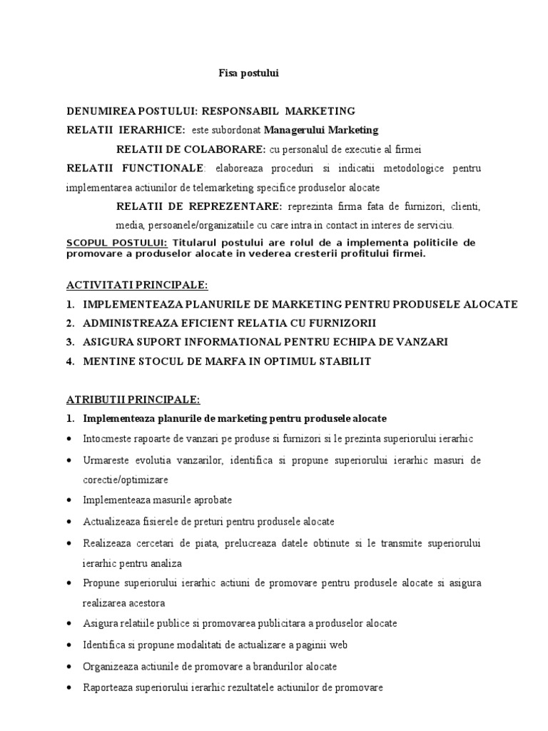 Fisa postului kfc. O metodă rapidă gratuită și confortabilă de a găsi un job printre 24 000 locuri de muncă în românia și peste hotare. In esenta cookie urile ne ajuta sa imbunatatim continutul de pe site oferindu va dvs cititorul o experienta. Access tens of millions of documents in pdf txt microsoft word and powerpoint formats. Efectuarea tranzacţiilor promovarea produselor din gama kfc kentucky fried chicken efectuarea inventarierii cat si a raportului zilnic de vanzari gestiunea şi aprovizionare 01 03 2010 31 05 2010.