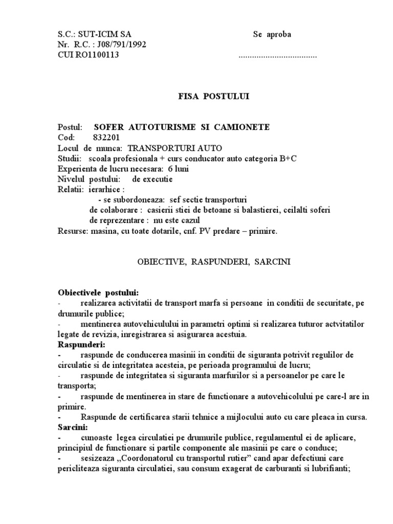 Operator transport si. Fisa de post manipulant marfa. Conditii de ocupare a postului. Fida postului manipulant marfa started by miky2010 apr 02 2008 08 33 am nu puteti replica pe acest topic.