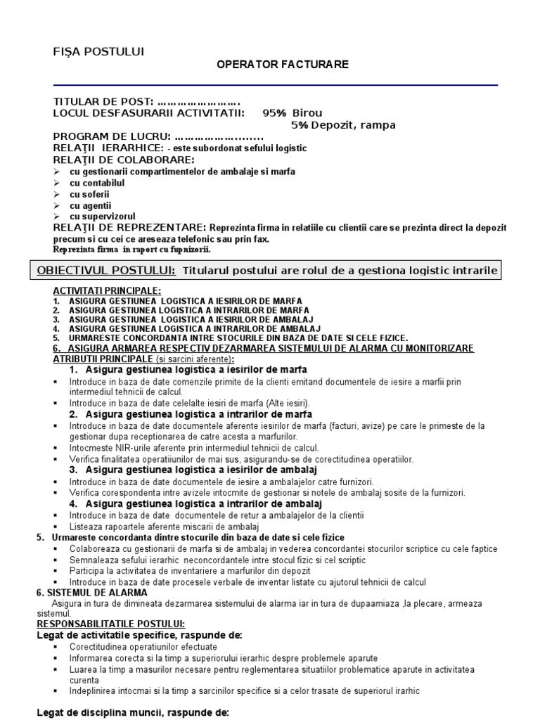 Fisa Postului Operator Calculator