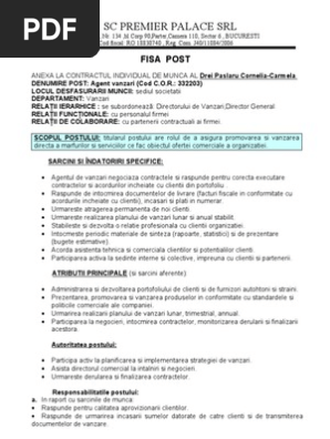 Fisa de post agent de vanzari. Numele si prenumele salariatului. Fisa evaluare riscuri agent comercial. Fisa postului pentru reprezentant comercial reprezentant comercial i.