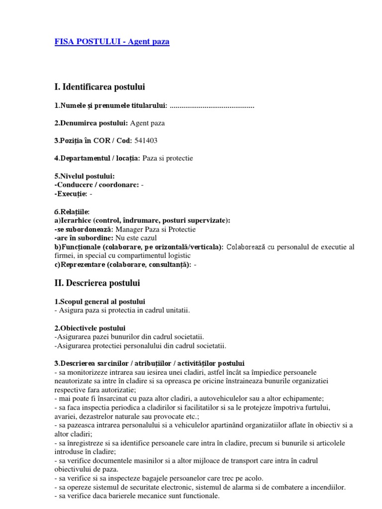 36 pagini documente editabile. Fisa post tractorist cod cor 834101 intrebare. Fisa postului pentru tractorist cod cor ver. Fisa de post zugrav.