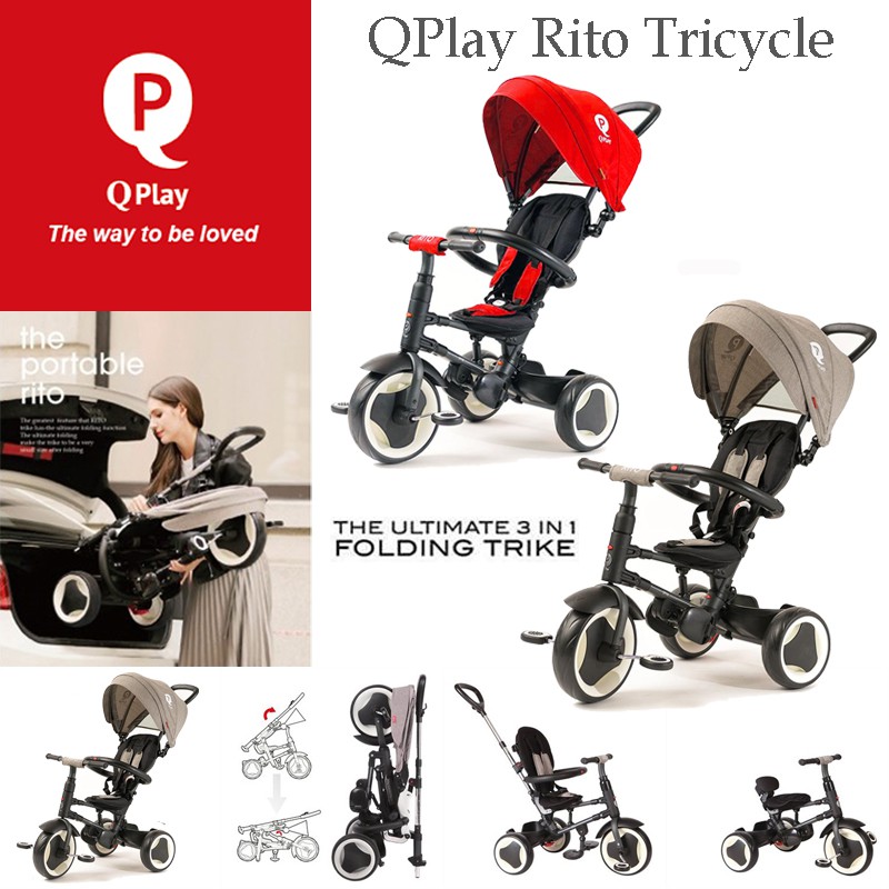 Perfect for children as young as 18 months old to transition from tricycles to bicycles. The rito folds down for easy storage and transport unlike most toddler trikes making it easier for parents to carry the trike in cars public transport and even tricky terrains such as escalators. Qplay rito is the absolutely necessary product for any new adventure in the little one s life being foldable the tricycle is easy to transport anywhere and thanks to its convenient size it. Qplay rito is our best known folding evolving tricycle.